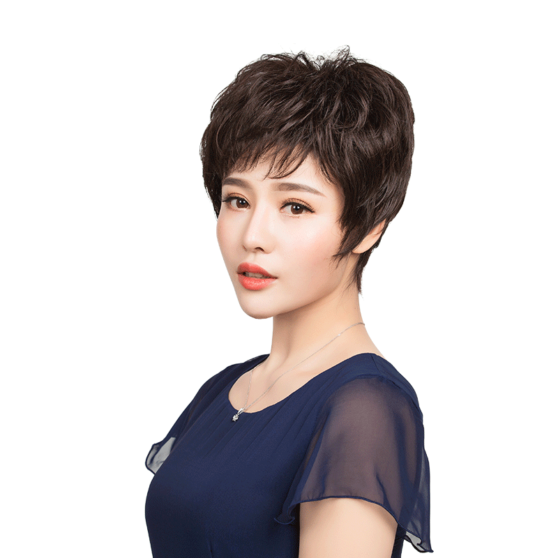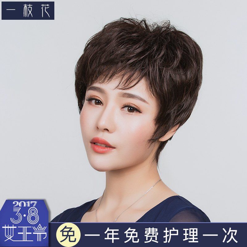 A flower wig Female short hair Short curly hair mom short hair Lady middle-aged round face hairstyle light breathable fluffy