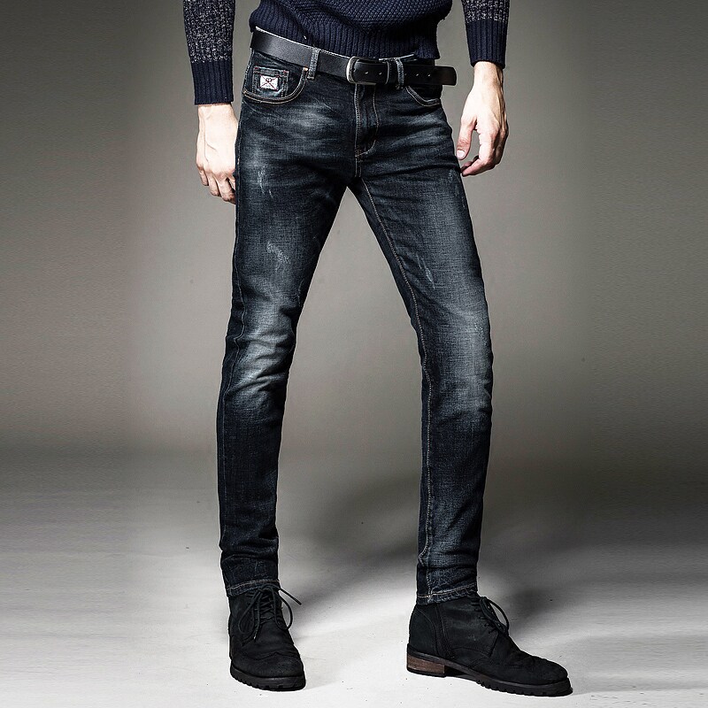 Black jeans men's fashion brand spring and autumn 2019 new men's slim stretch narrow pants joker straight trousers