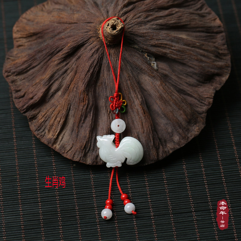 This life year natural emerald jade zodiac zodiac zodiac zodiac red rope pendant mobile phone hanging ornament key button male and female