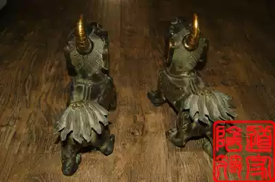 Extremely beautiful bronze Feng Shui strong town house lucky town evil copper Pixiu pair open up evil luck lucky