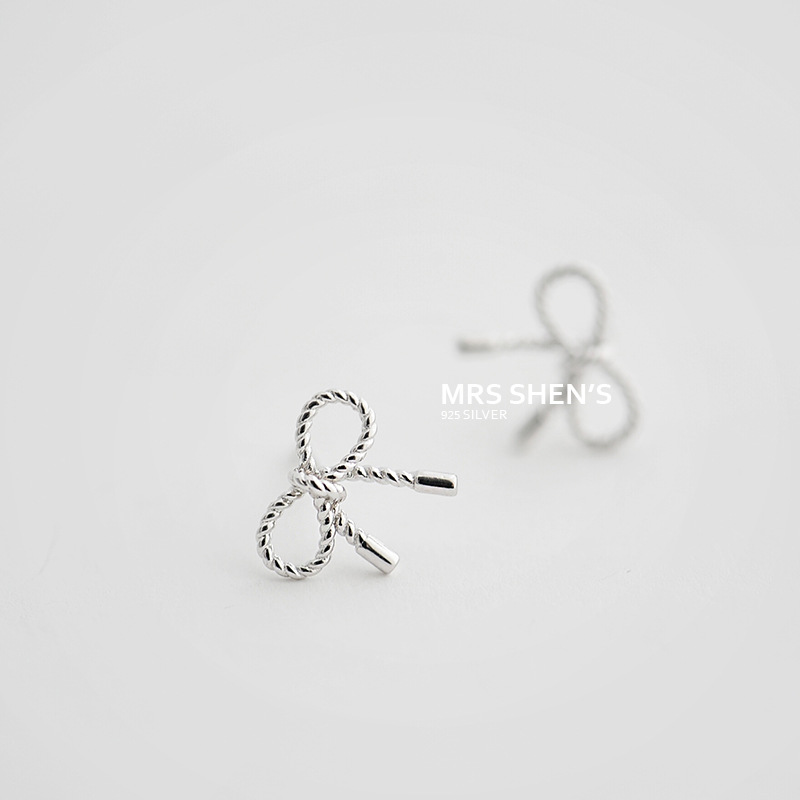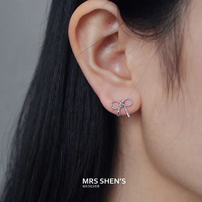 Japan-ROK 925 pure silver earthen woven hemp flower Japan-ROK cute little frescoed butterfly knot ear nail female 100 hitch