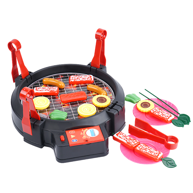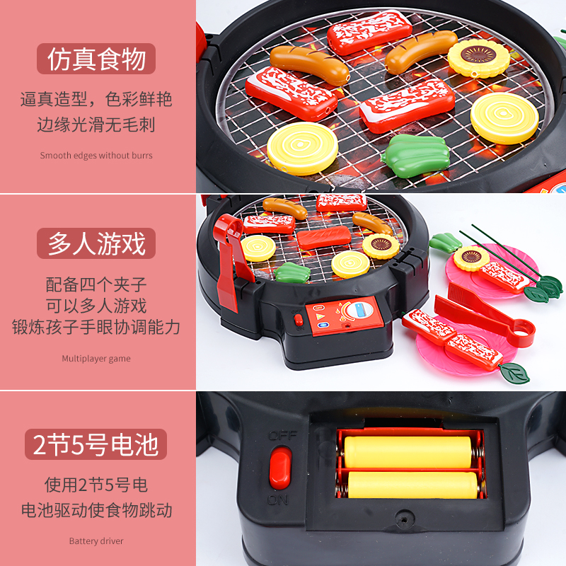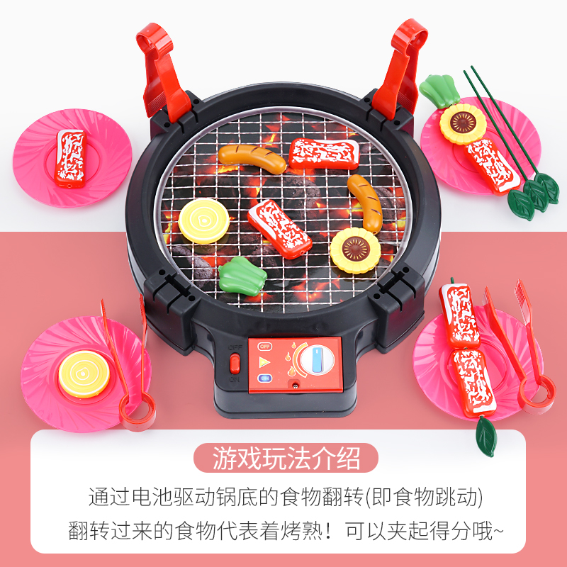 Dress up wine skewer barbecue grill Children's simulation barbecue grill kitchen Children's pizza cut music toy set skewer