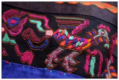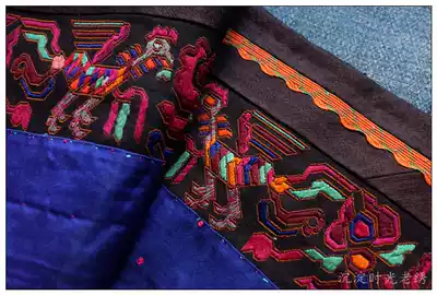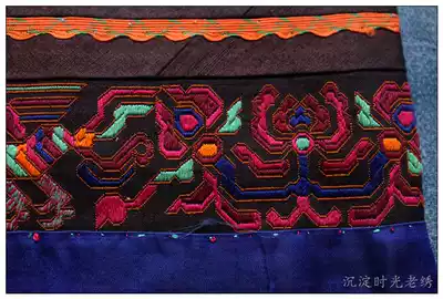 Black seedling old embroidery rare Miao embroidery piece lock edge embroidery number yarn embroidery cuff pair 40*5 5cm ay101