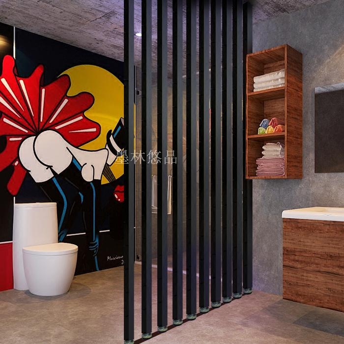 Screen wooden partition living room entrance seat screen Modern fashion simple Chinese minimalist art Solid wood vertical stripes black