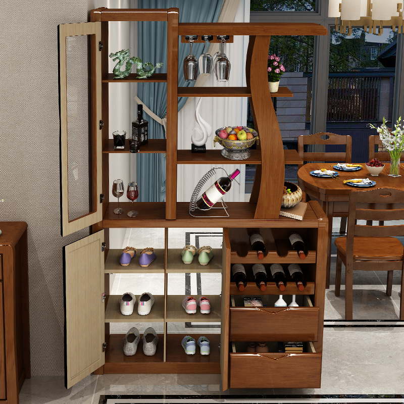 Solid wood glass wine cabinet Living room screen cabinet Modern new Chinese partition cabinet Household room hall cabinet Entrance cabinet Double-sided cabinet