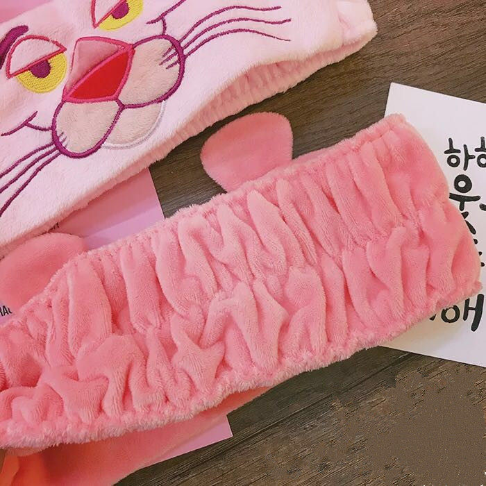 Ultra cute INS hot powder pink leopard Naughty Leopard Embroidery Wash Face Bunch Hair Stirrup