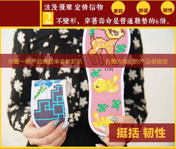 Manual pinhole semi-finished products Precision printed cross embroidered insole full cotton Breathable Deodorant for Men and Women