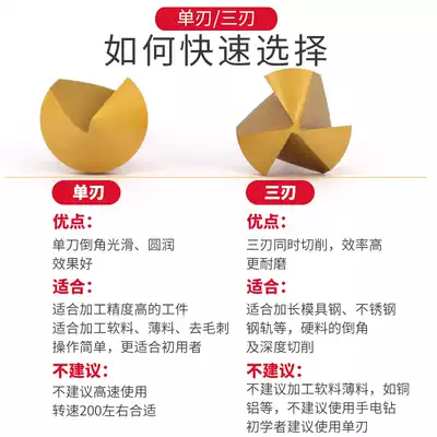 Korea YHOK cobalt-containing titanium-plated cylindrical Chamfering knife 90 degree single three-edged 45deg stainless steel Special straight handle Trimmer