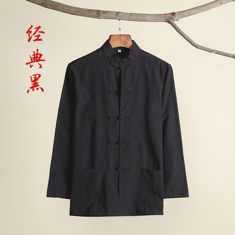 Pure cotton old rough cloth Tang clothing men's spring and autumn long-sleeved Chinese shirt shirt Large size kung fu base shirt Meditation lay suit