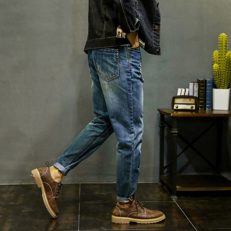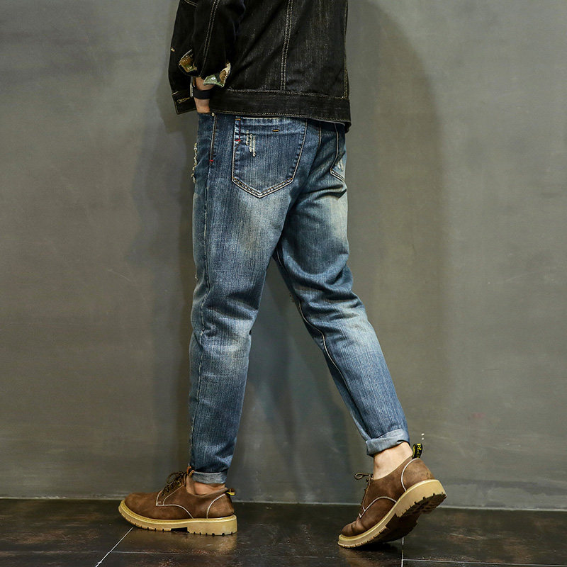 men's spring autumn ripped jeans new fashion brand plus size stretchy fat harem ankle pants