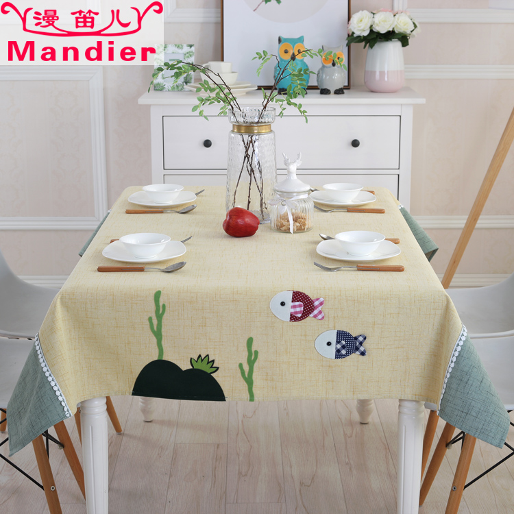 Rectangular desk cloth fabric cotton linen small fresh tablecloth cute Korean household pastoral Nordic simple modern