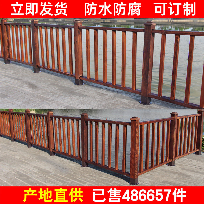 Outdoor anti-corrosive wood guard rail fence Courtyard Balcony Terrace Road Lawn Carbonated Wood Fence Wood Guardrails Wood Railing