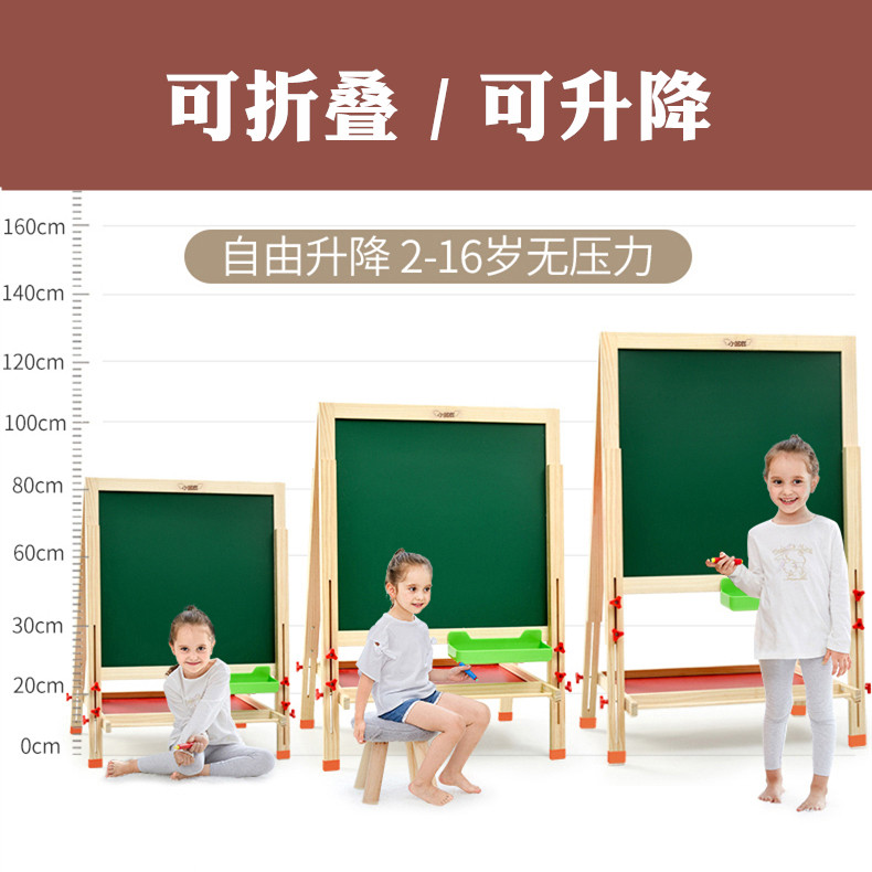 Large solid wood children's writing board Children's household bracket type blackboard Vertical lifting double-sided magnetic drawing board easel