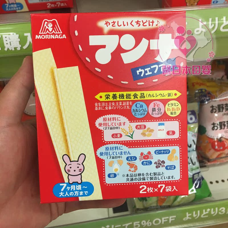 (Supplementary food) Japan Morinaga wafer biscuit baby high calcium nutrition function molar stick for 7 months