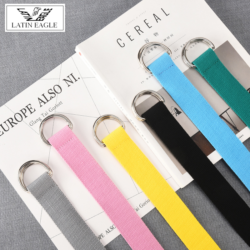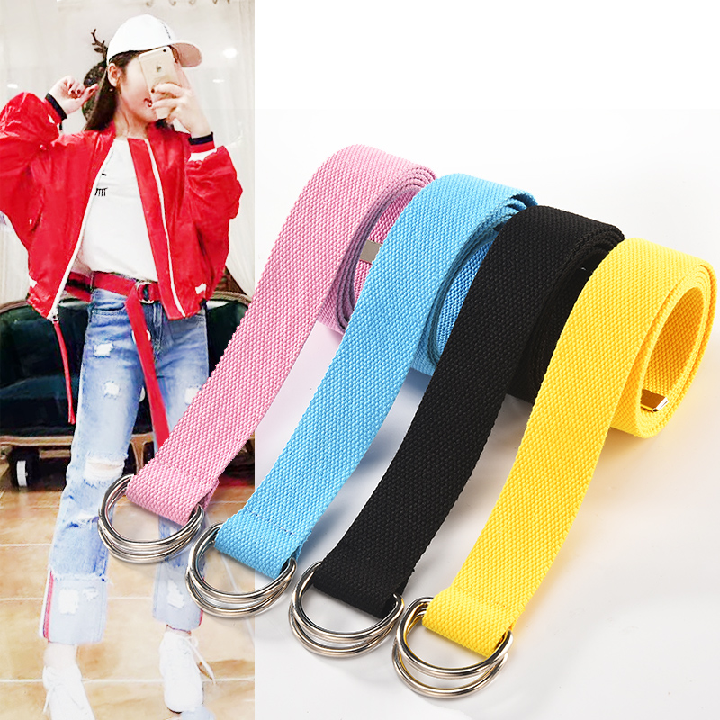 Canvas Belt Female Original Bf Wind Decoration Double Ring Buckle Woven Wide Tide Brief about 100 hitch South Korean dress belt male