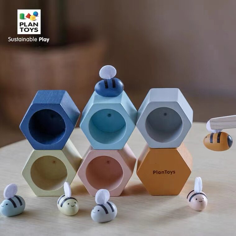 Thai PlanToys Beehive Game Bee Color Pairing Stacked Puzzle Babies Teach Toys Parent-child Interaction Early