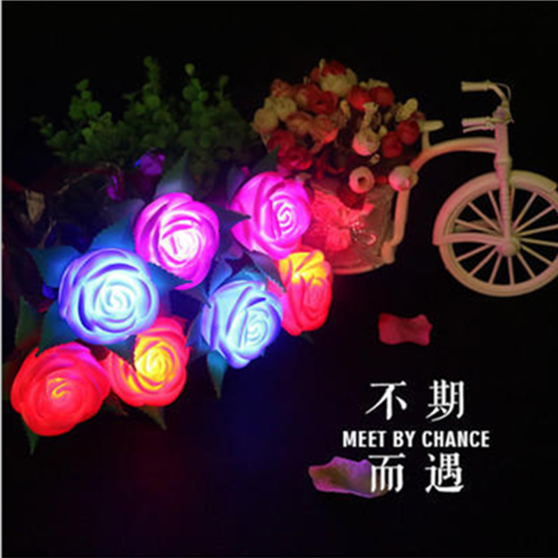 With Branches Leaf Emulation Rose Flowers Shine Seven Colorful Little Night Light Valentine's Day Never withered on Valentine's Day