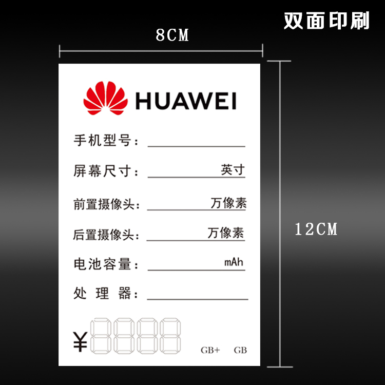 New double-sided price tag price tag Huawei 5G tag mobile phone store price tag horizontal glory 12X8 can be customized
