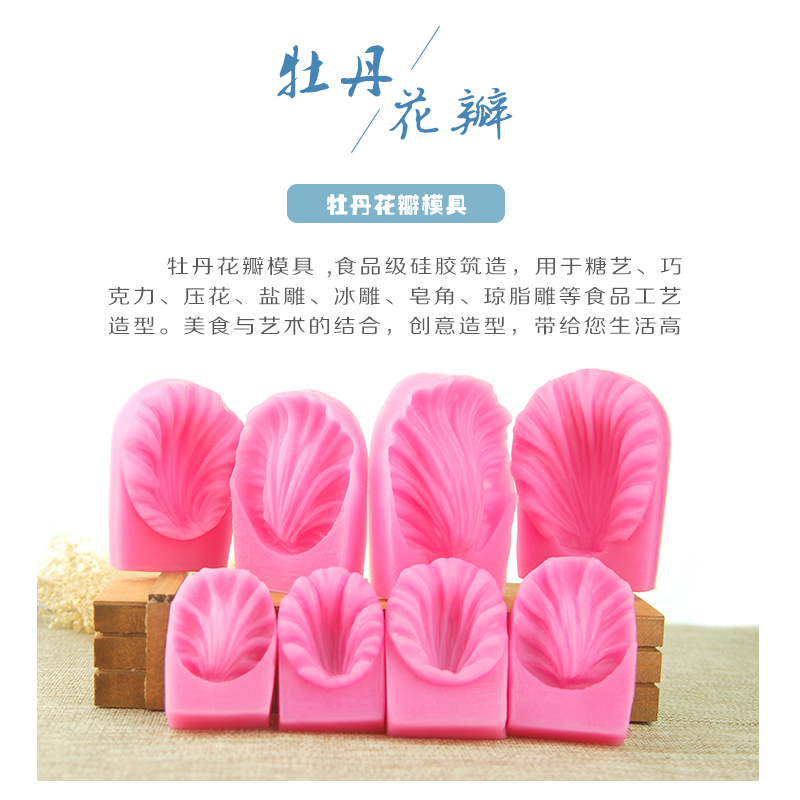 Kong Ming Sugar Art Peony Flower Petals Flower Petals CANDY CAKE MOLD SUGAR ART SILICA GEL DIE 4 PIECES OF PEONY PETAL MOLD