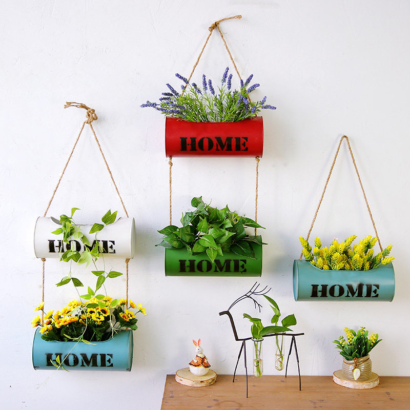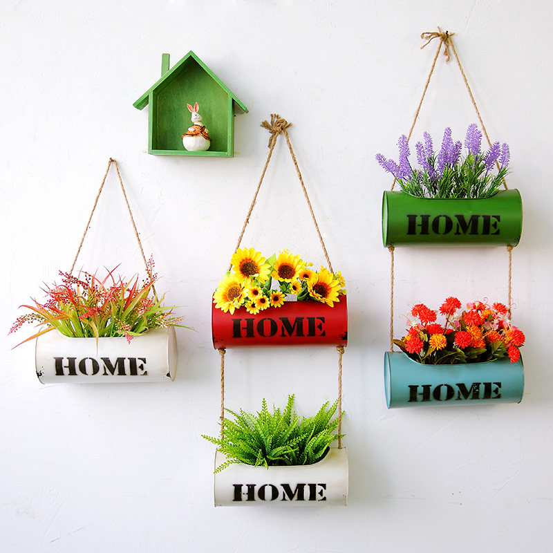 Creative wrought iron wall hanging flower pot balcony hanging flower stand cafe milk tea shop dining room wall decoration green plant pendant