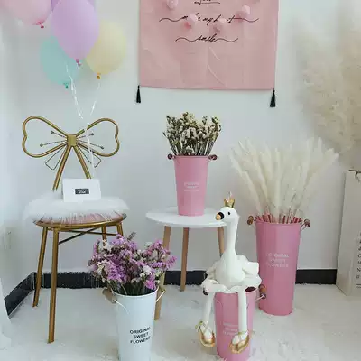 A White on black 01 Pink reed pink large bucket 02 White reed pink large bucket 03 Pink white forget-me-not white small bucket 04 Yellow and white forget-me-not pink small bucket 05