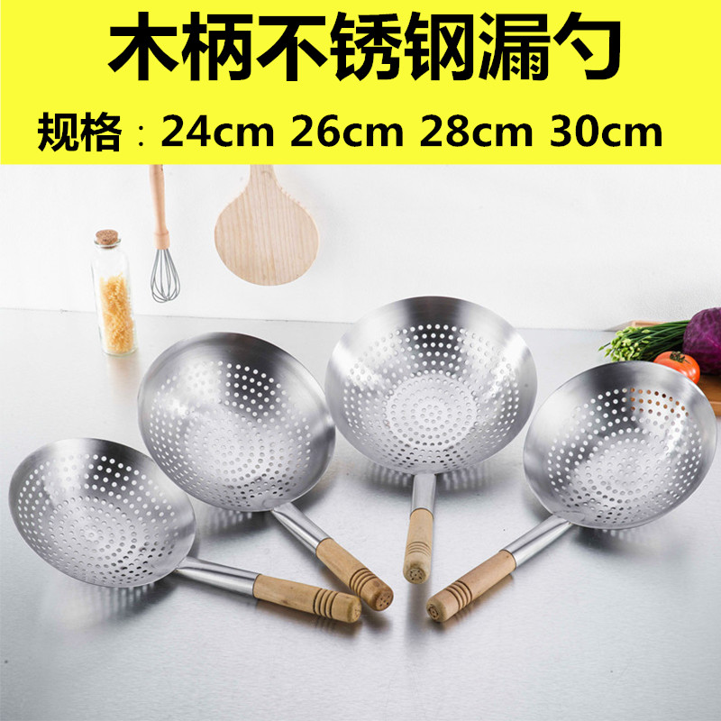 24cm wood handle leaking spoon 26cm wooden handle leaking spoon 28cm wooden handle leaking spoon 30cm wooden handle leaking spoon