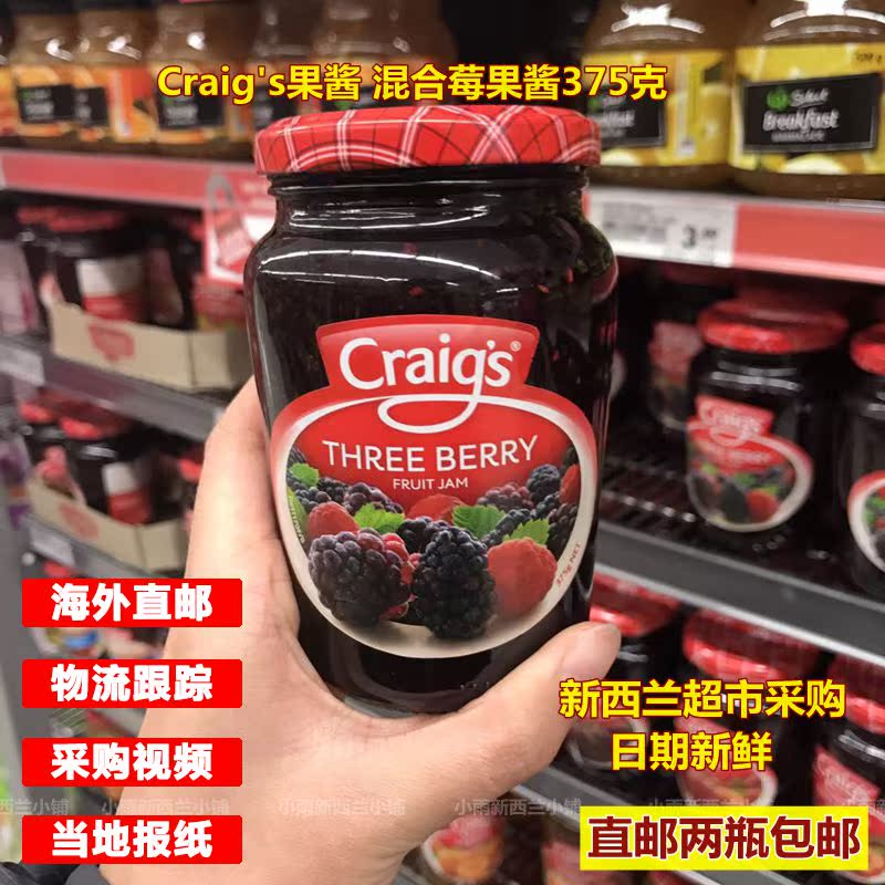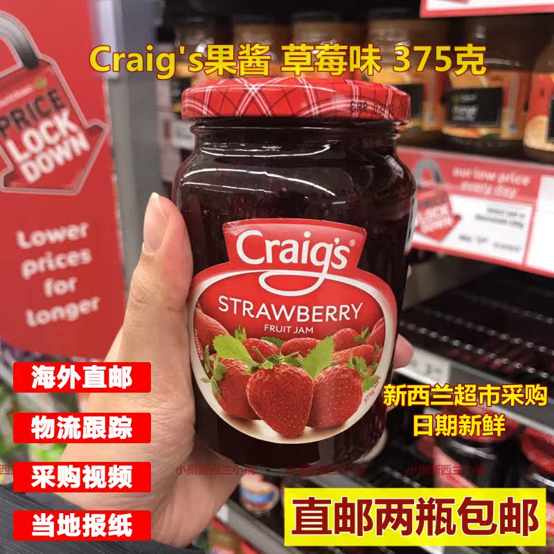 New Zealand Craigs Fruit Jam Strawberry Mixed Berry 375 gr Two bottles of a loaf of bread