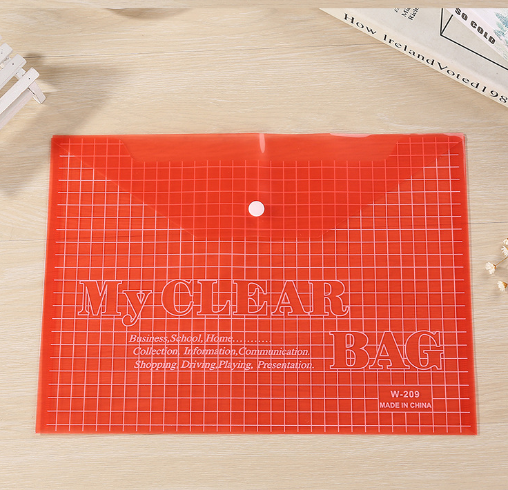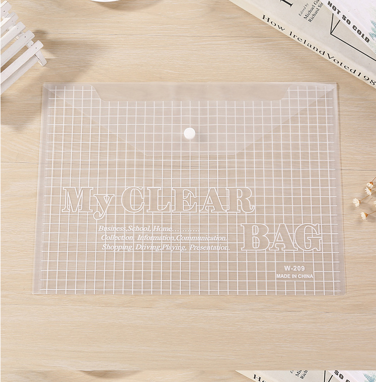 A4 press the button of the button of the pallet bag transparently printed and customized office plastic archive bag