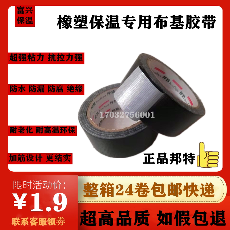 Bontebuki adhesive tape black rubber and plastic cloth base adhesive tape insulation piping carpet waterproof sunscreen strong pull with silk