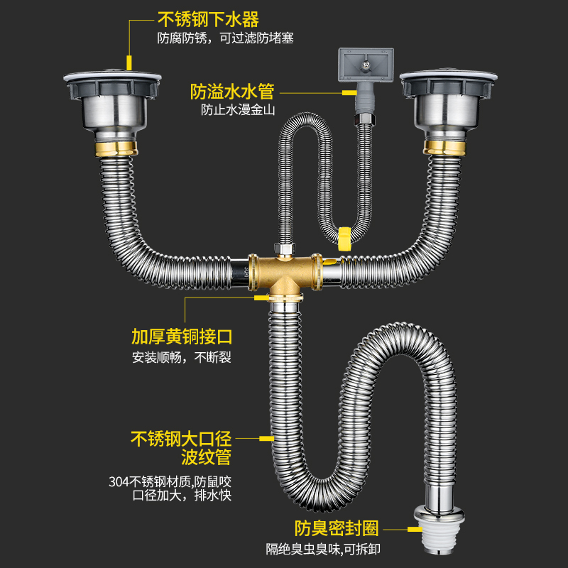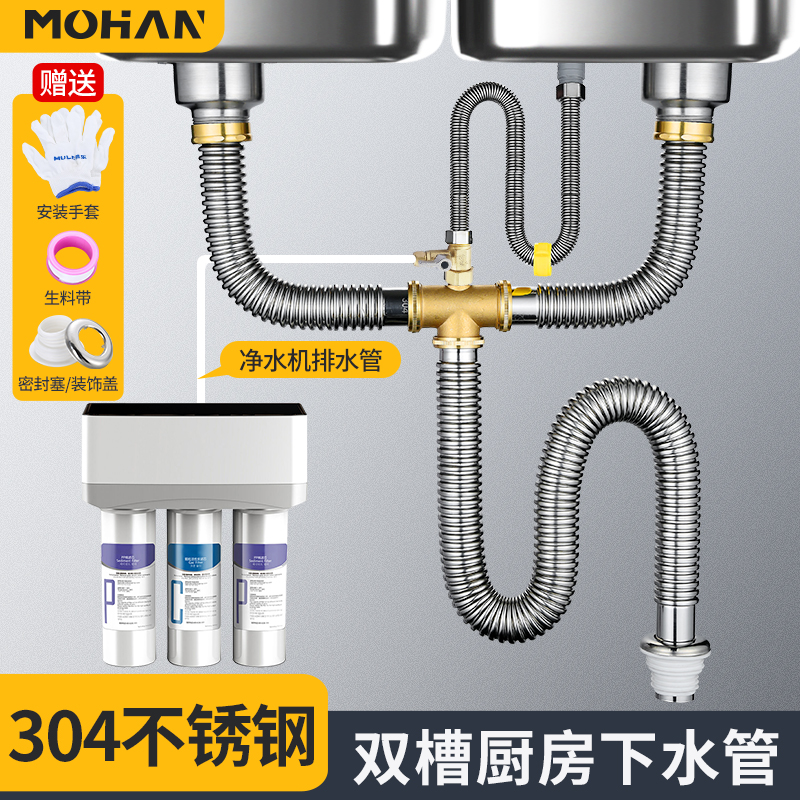 Sink Sewer Pipe 304 Stainless Steel Kitchen Double Sink Drainer 110140 Wash Basin Double Trough Washbasin Water Purifier Accessories