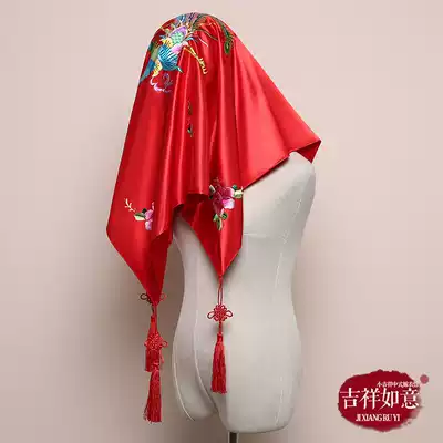 Hand embroidered hijab Chinese wedding bridal accessories Red red hijab Hiker Xiuhe clothing head cover dream hijab tassels