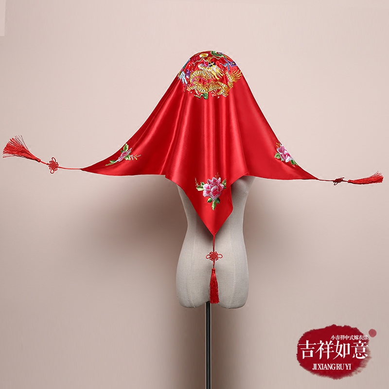 Hand embroidery red hi pa xiu he dress head cover dream turban tassel hijab Chinese wedding bride accessories red
