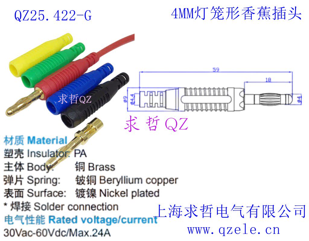 Full copper 4mm lantern banana plug without sheath Full copper gold plated assembled physical experiment connector head