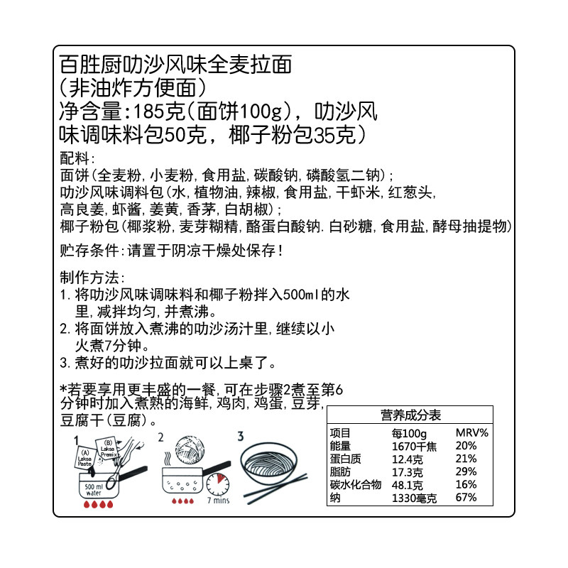 Wheat flour Salt Food additives (sodium bicarbonate disodium bicarbonate) Laksa Seasoning