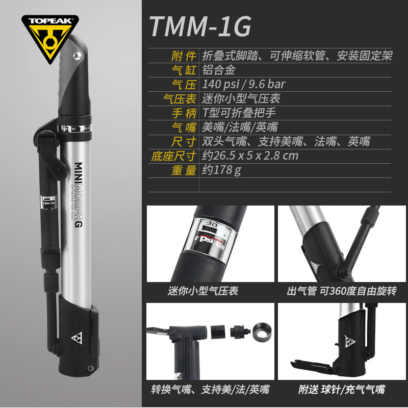 Topeak Mountain Bike Road Bike Mini Portable High Pressure Pump Cycling Equipment TMM-1G