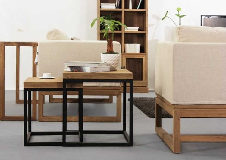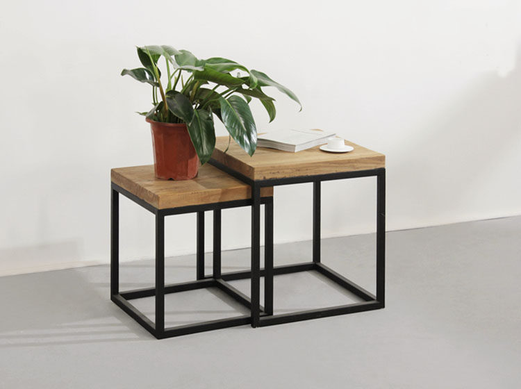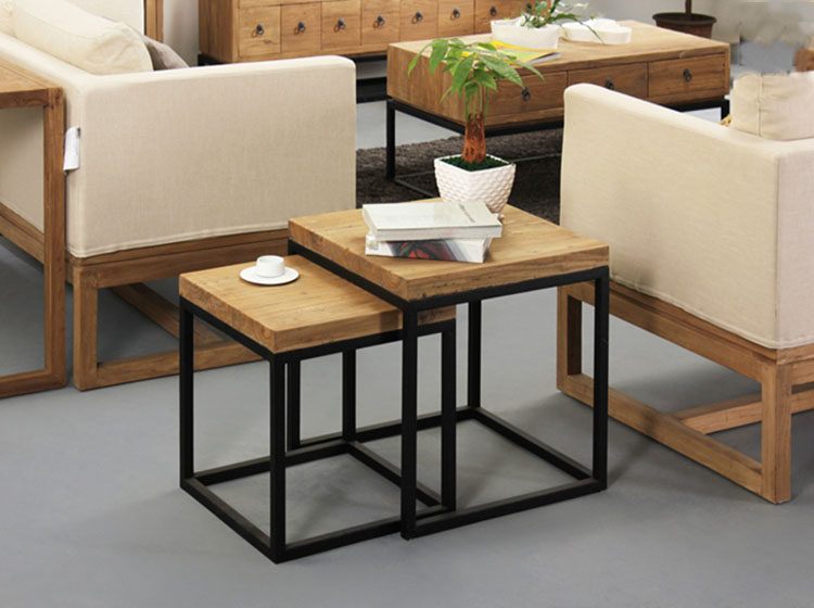 LOFT American country wrought iron solid wood tea table side set bedside table sofa phone small wooden table creativity