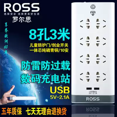 Rolls white socket wiring board smart row plug 6-8 main switch 1 8 meters 3 meters