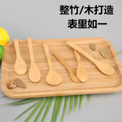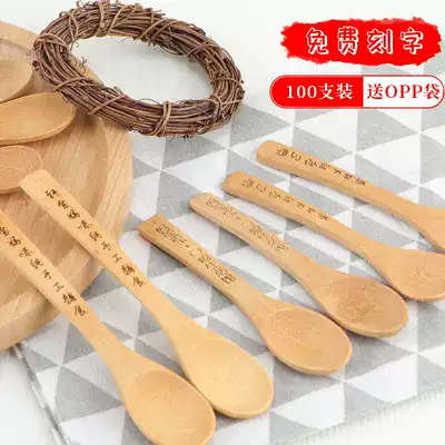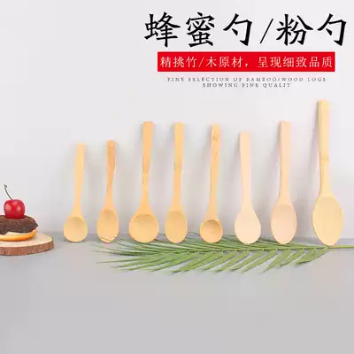 Small wooden spoon Japanese honey spoon long handle round bamboo spoon lettering logo custom round head short handle seasoning spoon powder spoon