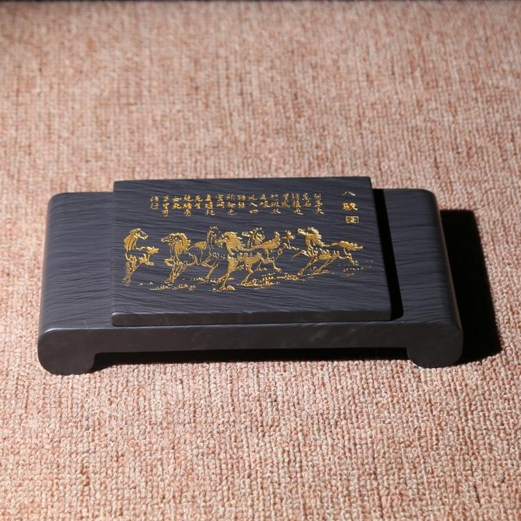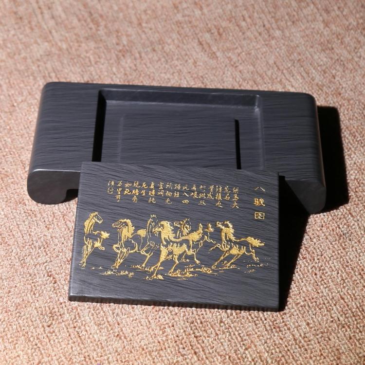 Eight-inch Utility Ink Stone 8 Jun Tuyuan Original Stone stone Ink Stone stone ink pool Book case Exercise Calligraphy Ink Stone and Calligraphy Ink-stone Fill in Gold
