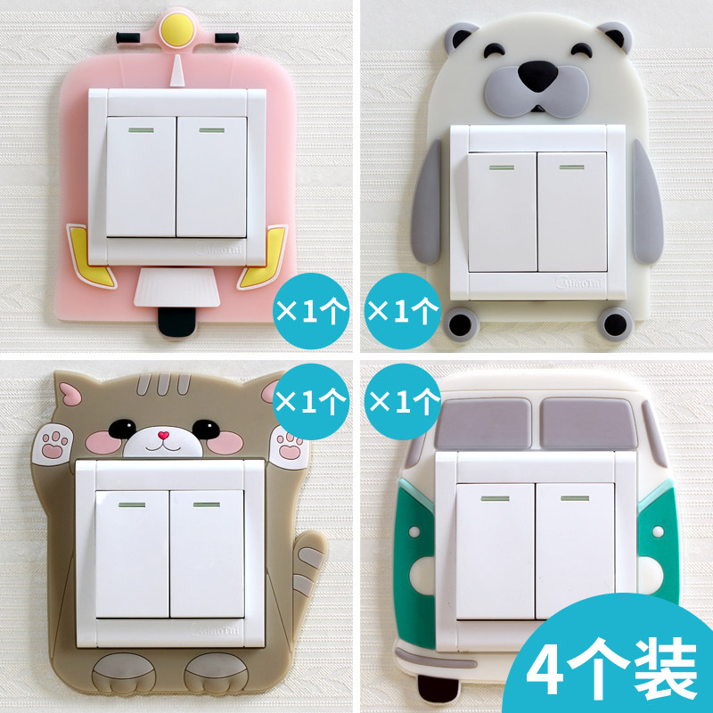 Cartoon luminous switch wall sticker living room switch protective cover Socket decoration sleeve bedroom switch decoration 4 packs