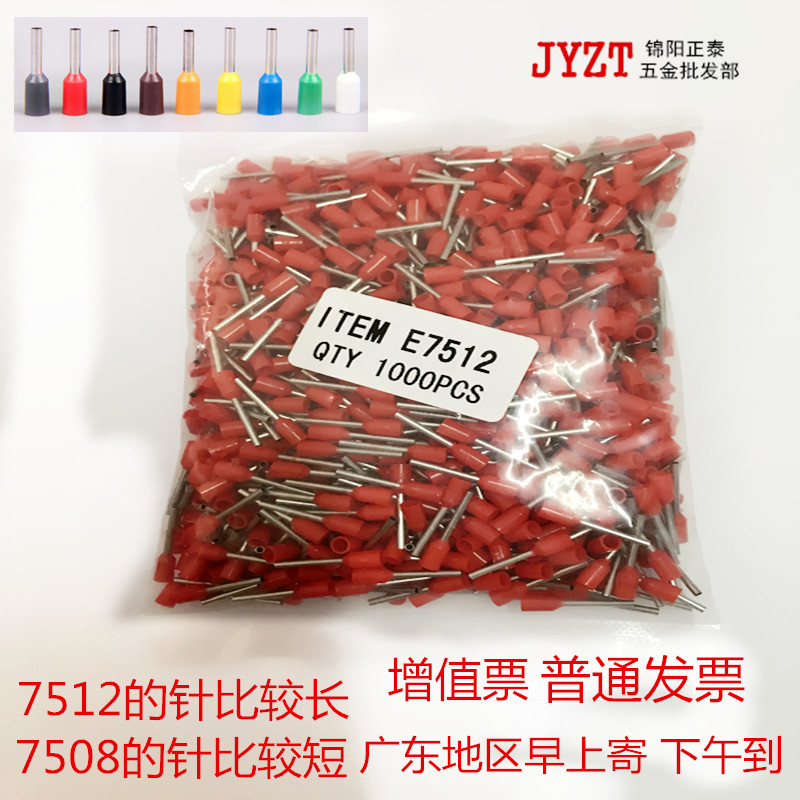 Jinyang E7512 Eurotype terminal cold pressure small black clamping tube terminal wiring terminal copper wiring terminal VE7512 needle type end