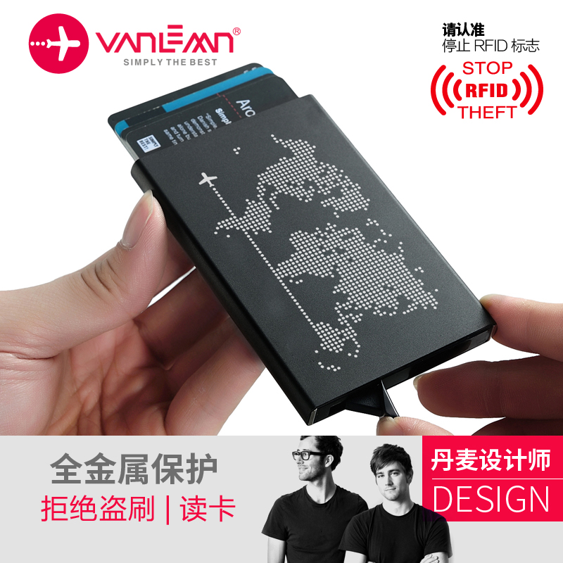 Danish Vanlemn Anti Magnetic Wallet Men Shield NFC Sleeve Theft Protection Brush RFID Card Case Small Card Bag Metal Clip-Taobao