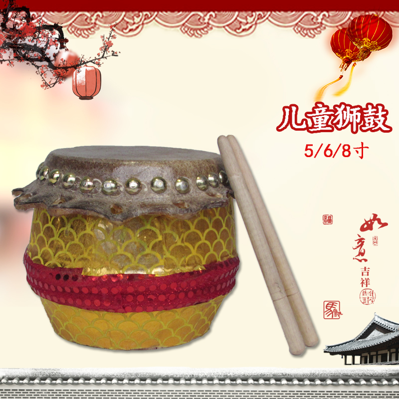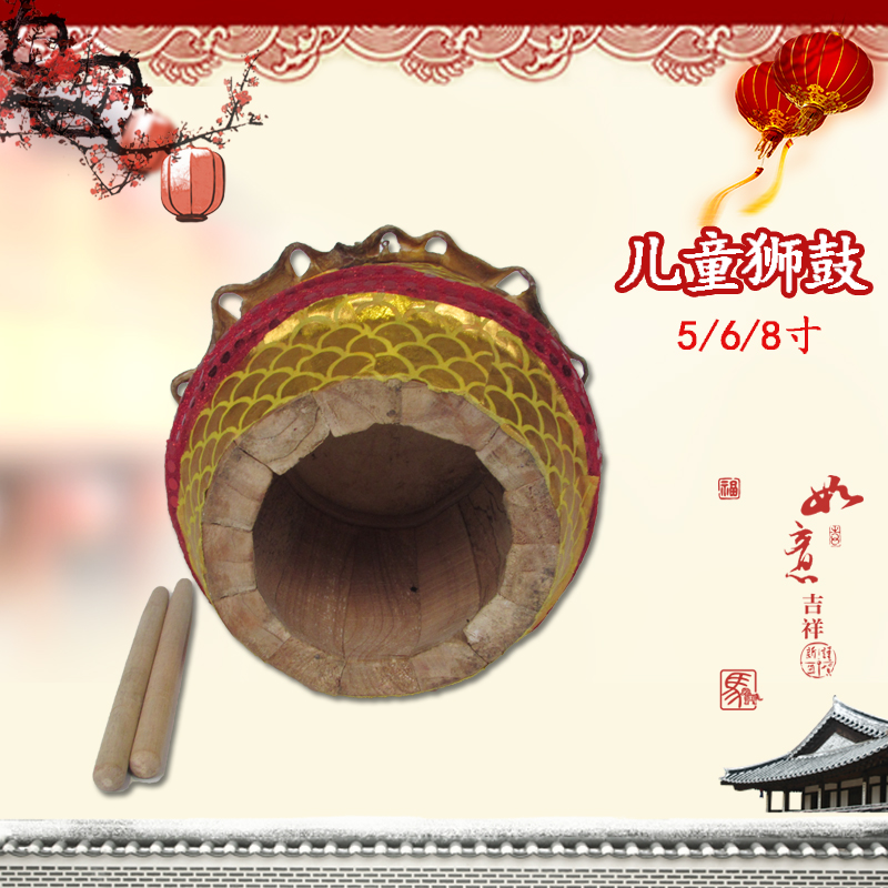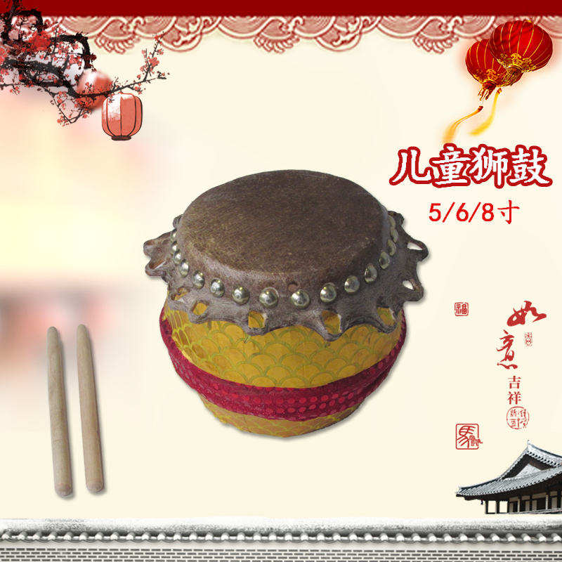 Wave guitar lion drum Foshan 5 inch lion drum children lion dance props 8 inch lion drum cowhide drum Wake lion drum children