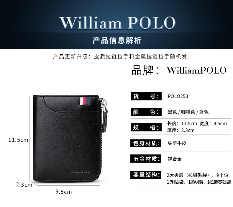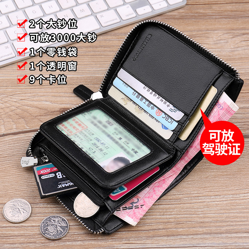 King Ralph Lauren Polo Driver's License Leather Case Wallet Men's Short Leather Wallet Wallet Vertical Zipper Coin Purse Men