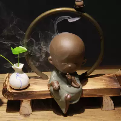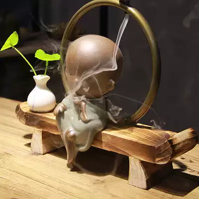 Chinese wood ceramic Zen decoration Reverse flow incense burner aromatherapy cute creative home living room entrance decoration
