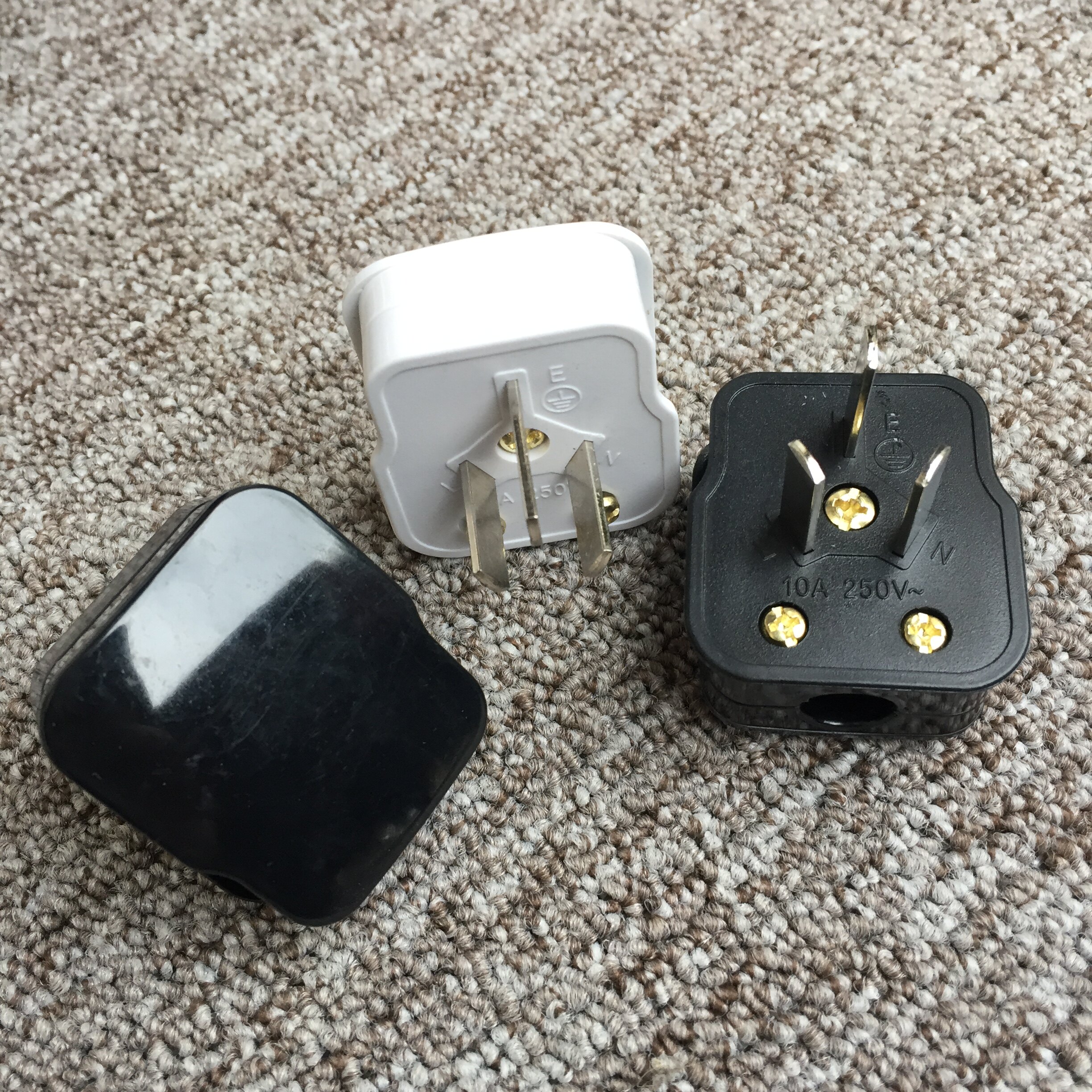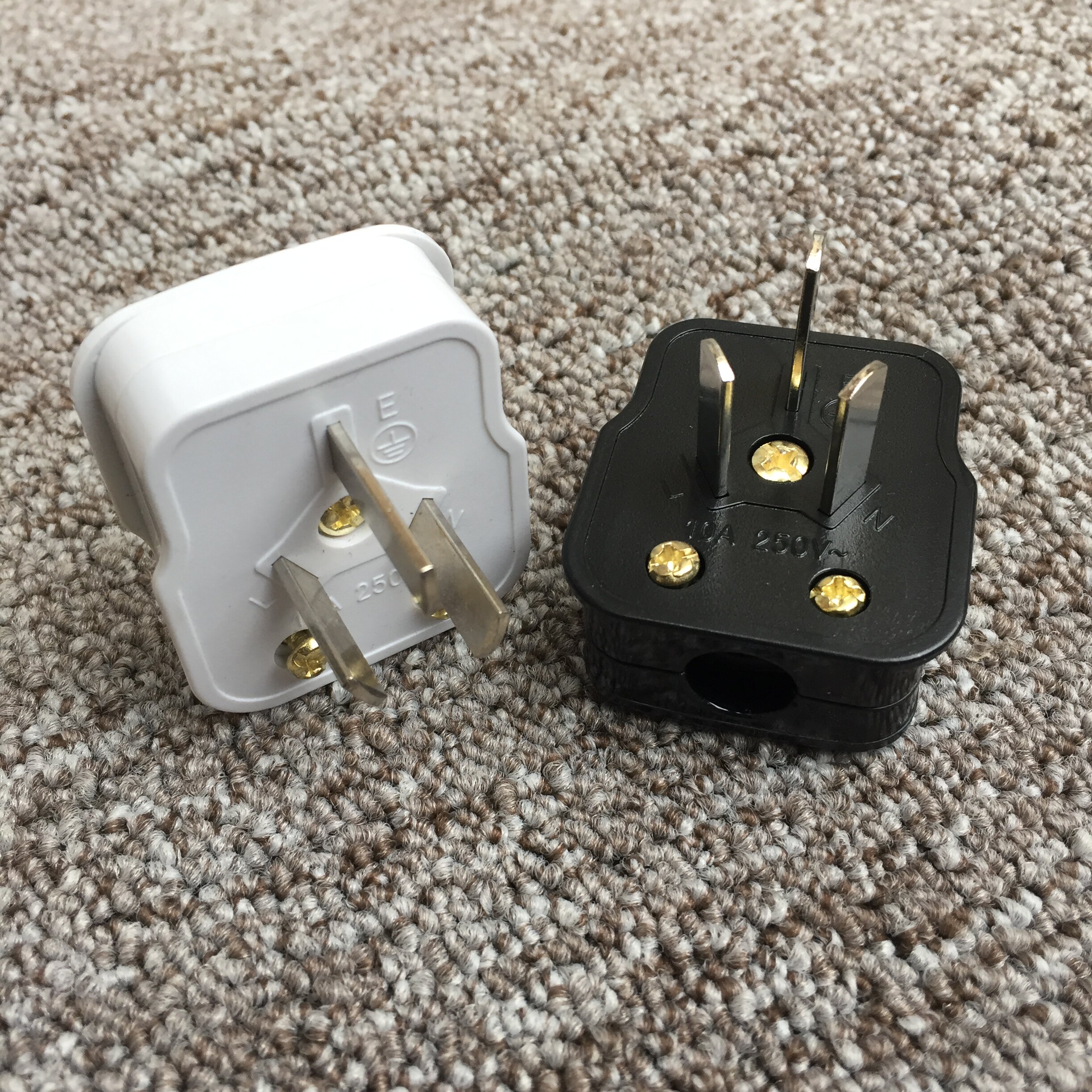 Three-pin plug 3 flat leg three-jaw plug wiring power plug 3 poles 3 eyes three-core plug black 10a