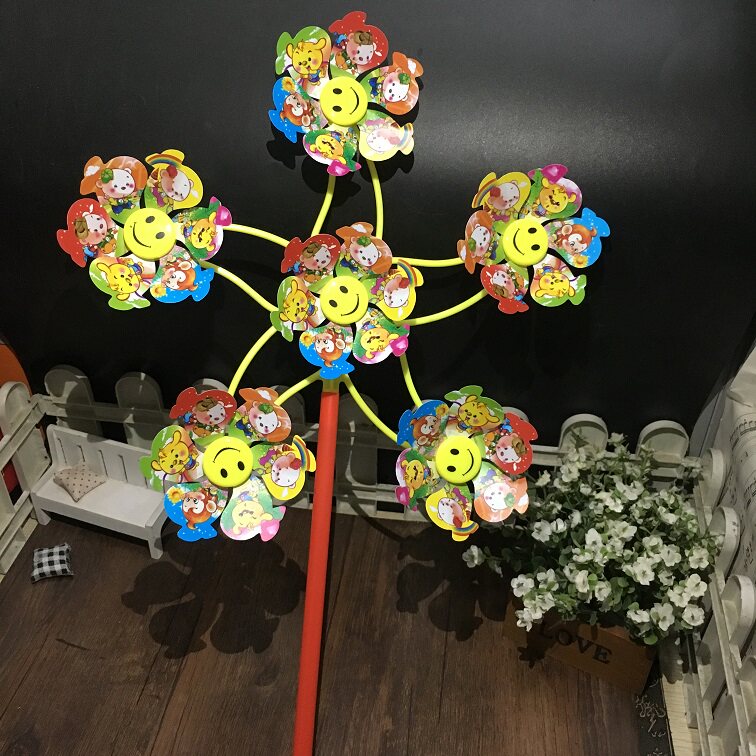 Six Rounds Cartoon Windmill Decoration Windmills Seven Colorful Laughs Face Windmills Children's Stall Stock Source Toy Manufacturer Direct