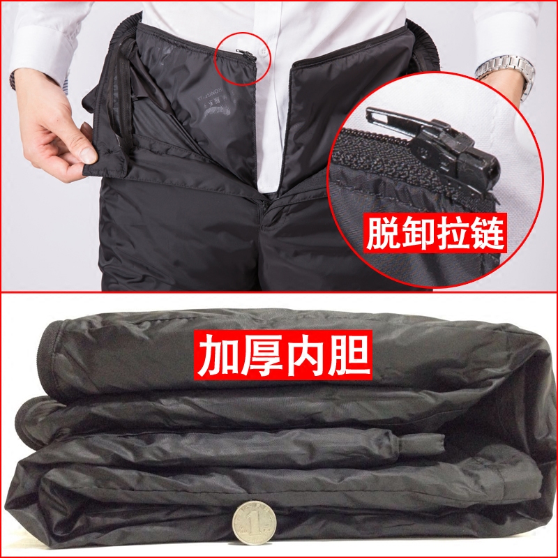 Middle aged down pants male outside wearing high waist thickened detachable men loose large size white duck suede outdoor cotton pants winter