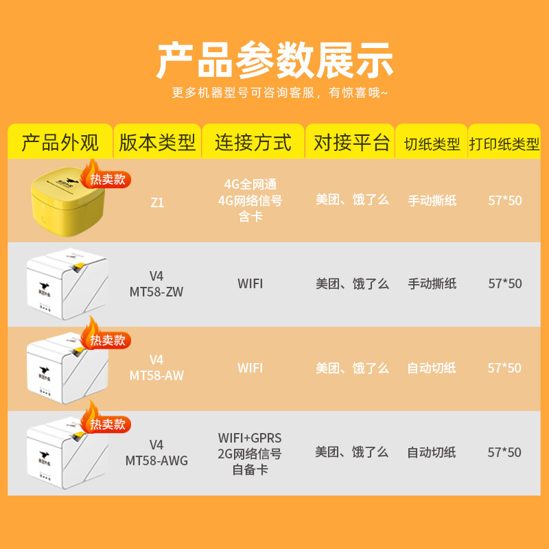 Meituan delivery printer V3 automatic order receiving artifact delivery order receipt machine cloud wireless WiFi GPRS