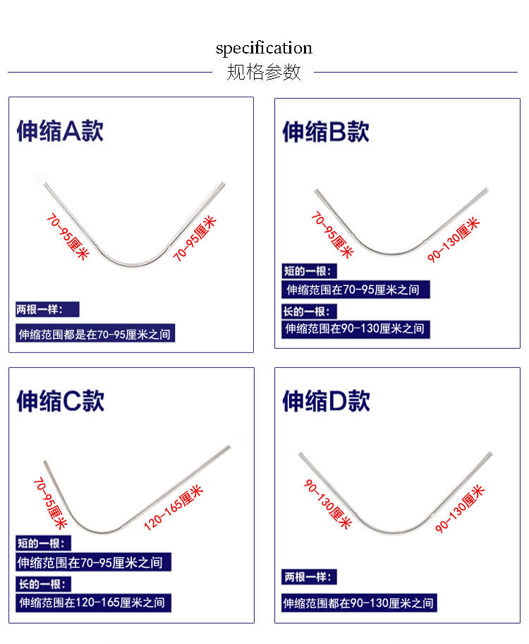 Punch-free telescopic A bath-curtain free of punch and telescopic B Bath Curtain Free of perforated telescopic C Bath Curtain Free flex D BATH CURTAIN FREE Non Telescopic 90 * 90 BATH CURTAIN FREE OF PUNCH WITHOUT EXTENSION